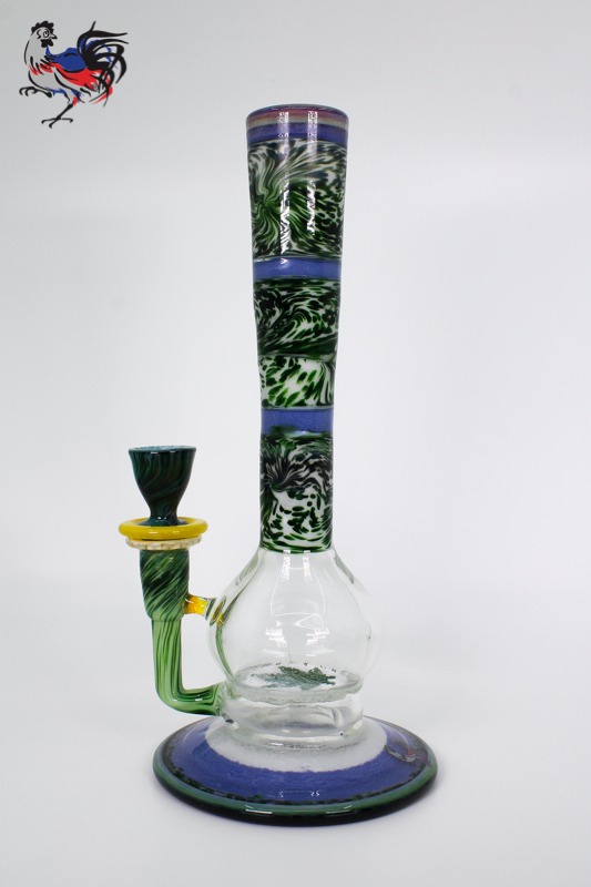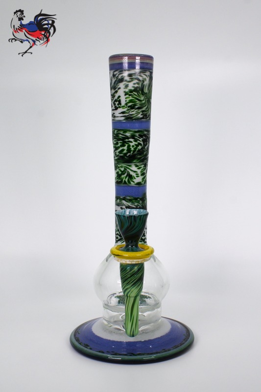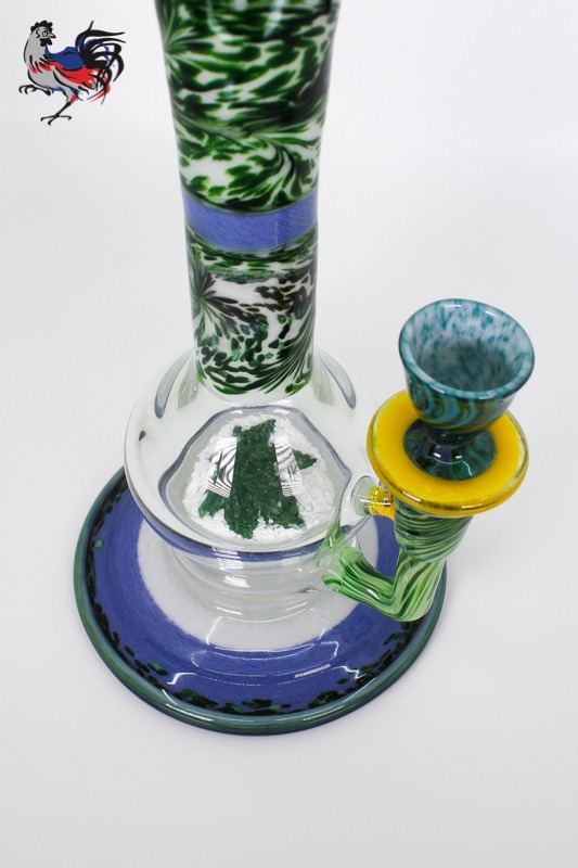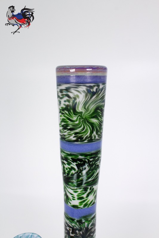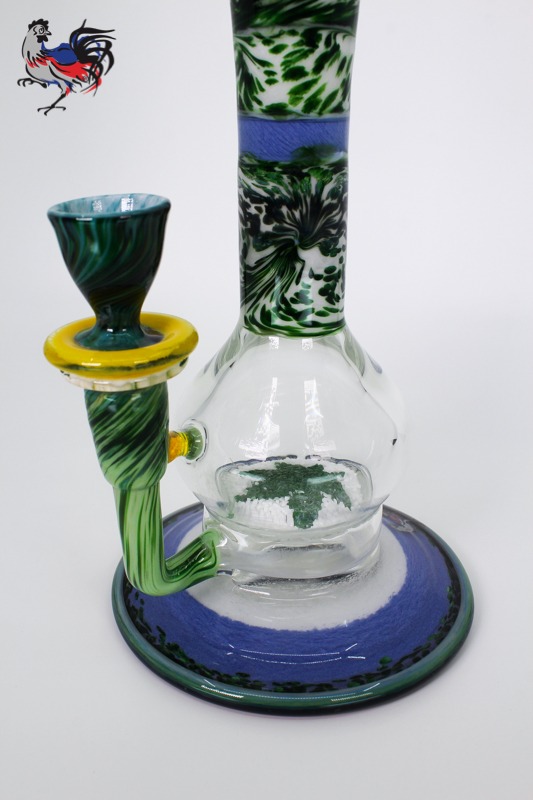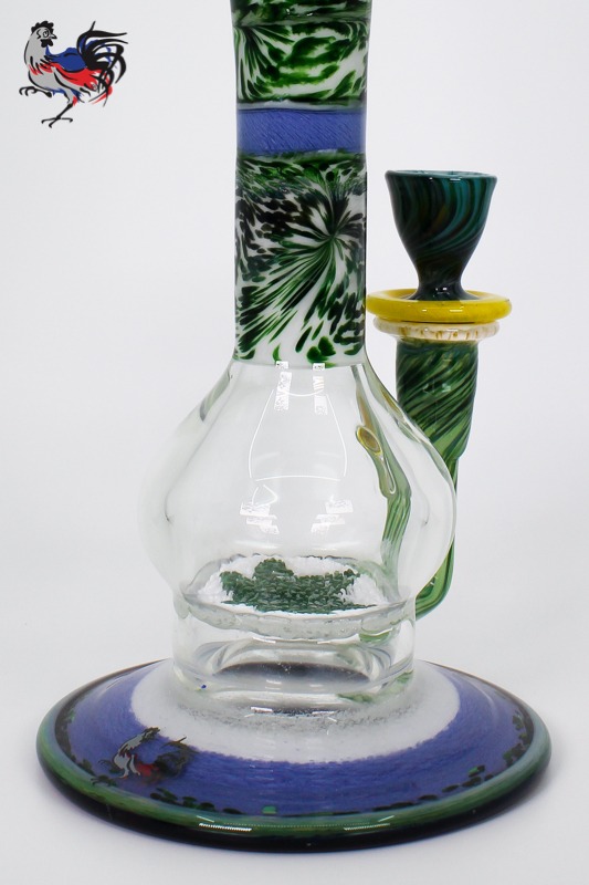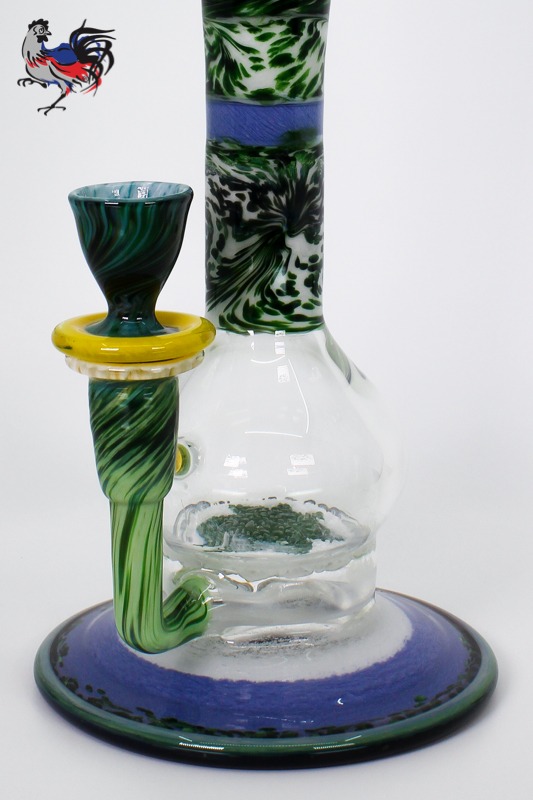 This custom Dave Goldstein Encalmo is fully worked from top to bottom and will work great for flower or concentrates. Designed around our 50mm fritted disc for excellent diffusion and a fully worked round flared foot.