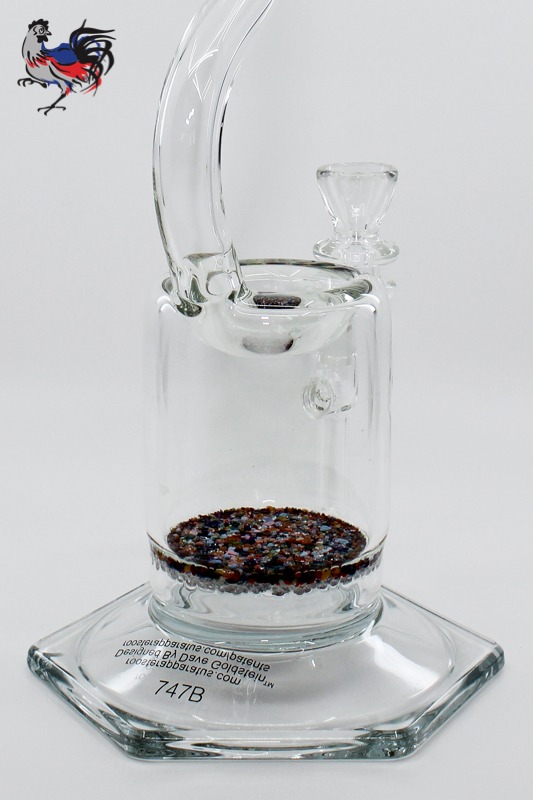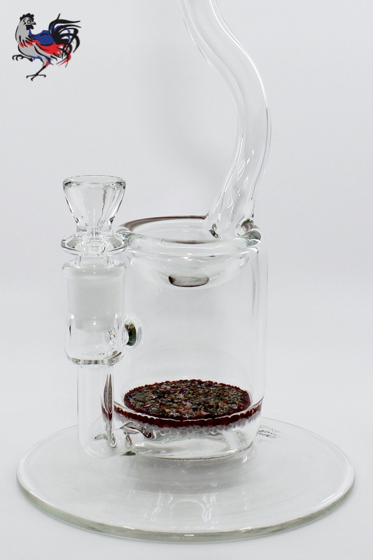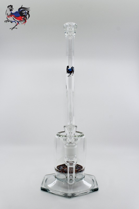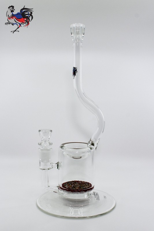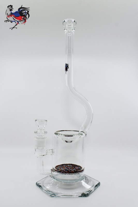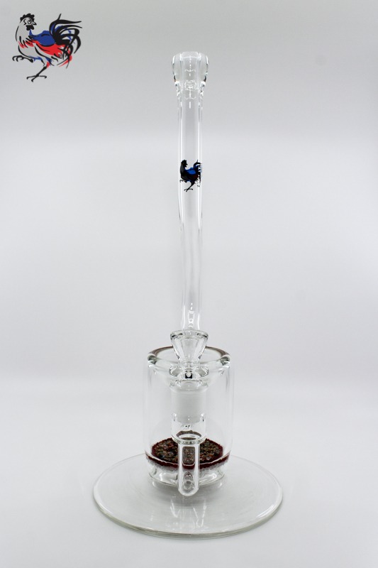 The Gooseneck is designed for flower and concentrate consumption. This Rooster has a can shaped body and is built around our 65mm fritted disc for excellent diffusion and can be configured with a 1000ml hex foot or a flared round foot. The Goose Neck comes with a 19mm female (outer) ground joint and bowl.