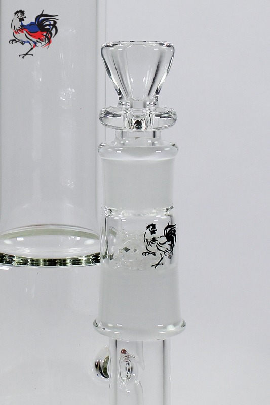 We offer this piece with the 24mm male (inner) joint and the 24mm/19mm adapter with frit pre-filters OR a 19mm female (outer) ground joint and a 19mm bowl, eliminating the need for the adapter and fritted pre-filters. We are currently including stainless steel screens to be used with the female joint in order to eliminate the migration of particulate matter into the fritted disc. The screen and bowl can easily be removed for use with your concentrate attachment of choice.