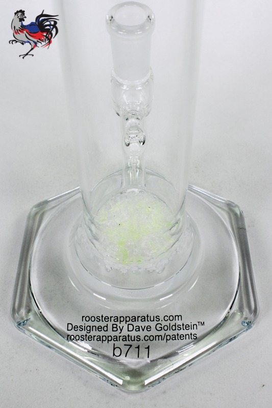 The Straight Shooter is designed for flower and concentrate consumption. This Rooster is built around our 38mm fritted disc and a 500ml hex foot. The Straight Shooter comes with a 14mm female (outer) ground joint and a 14mm bowl.
